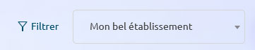 Vous pouvez également visualiser le planning d'un autre établissement si vous en avez plusieurs et filtrer les réservations par salle et par type de réservations en faisant votre choix en haut à droite du planning
