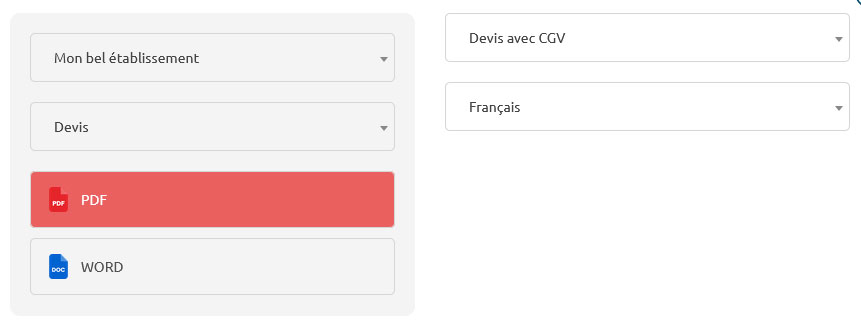 Vous devez ensuite choisir le format sous lequel générer votre document. Une fois le format choisi, vous pouvez choisir le template à utiliser et la langue
