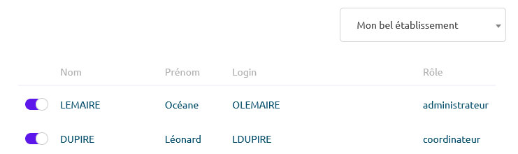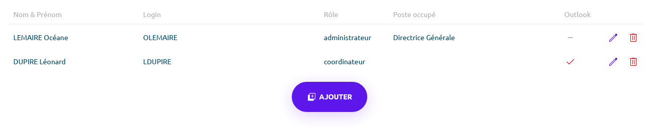Dans la liste des utilisateurs vous retrouverez :
