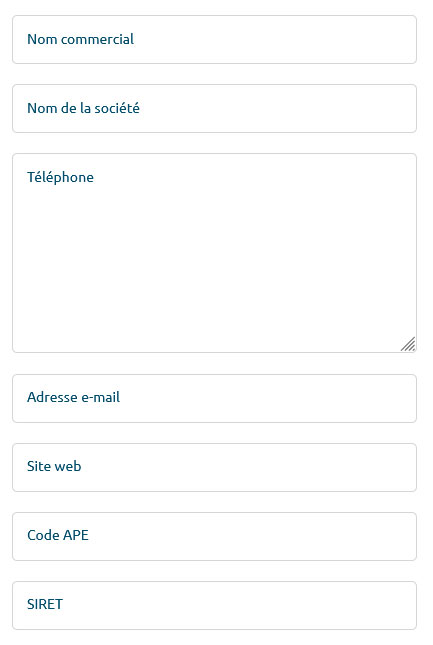 Les informations saisies ici seront reprises dans les devis, factures proforma et fiches de fonction.